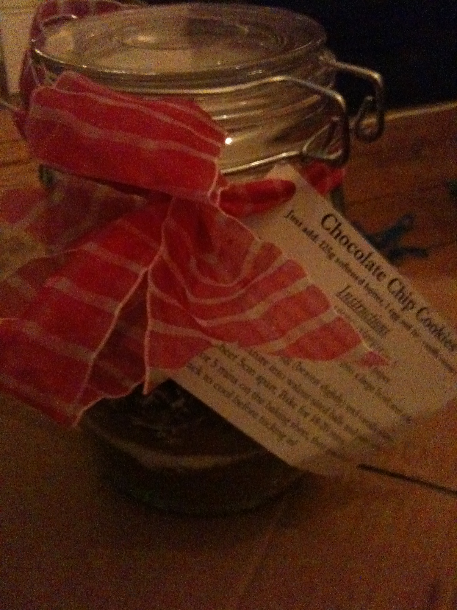 Here goes with the first of my ideas/instructions for homemade gifts.  I did a few of these for Christmas, they are super easy and were a useful option for the younger ones on my list.   A couple of adults got them too, but fewer than I had originally planned – I was worried that people might be insulted by the implication that they can’t cook without help.
